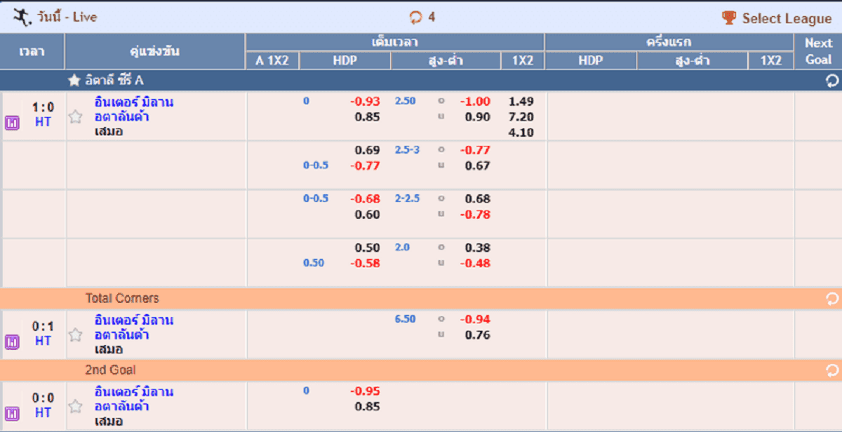 • สามารถแทงได้ล่วงหน้า หรือขณะแข่งขันก็สามารถแทงได้ สกอร์ สูง/ต่ำ เรามีครบ